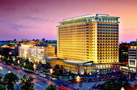 夜幕降临后的北京是绚丽而迷人的,长安街如一条灯火汇集的河流,为北京这座曾经沧桑的古城平添了一份年轻而跃动的旋律。而一座由四个不同时期建筑组成,位于长安街与著名的王府井商业街交汇处的楼宇群落,汇集在这城市繁华的夜色之中,这座建筑就是北京饭店。每一个经过这里的人都会为它的富丽和雍容所震撼,而当你真正走进这座百年老店,耳闻目睹凝聚着一个世纪的沧桑历史中,你才会真正了解这座建筑背后那份厚重而深邃的记忆。
